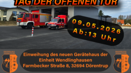 Die Feuerwehr Dörentrup wurde zusammen mit dem Rettungsdienst zu einer Notfalltüröffnung in den Ortsteil Schwelentrup alarmiert. Noch vor Eintreffen an der Einsatzstelle, öffnete die Person jedoch dem Rettungsdienst selbstständig die Tür, sodass keine weiteren Maßnahmen seitens der Feuerwehr erforderlich waren.