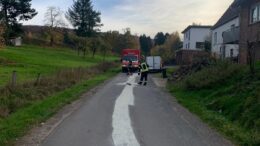 Durch einen technischen Defekt an einem Fahrzeug liefen Betriebsmitteln auf die Fahrbahn aus. Die Verunreinigung zog sich von der Straße Pferdekamp in Richtung Blomenstein. Die Einsatzkräfte der Feuerwehr streuten die ausgelaufenen Betriebsmittel mit Bindemittel ab, fegten das ganze ein und nahm anschließend das kontaminierte Bindemittel zur fachgerechten Entsorgung wieder auf.