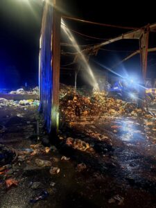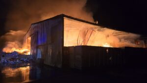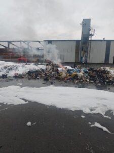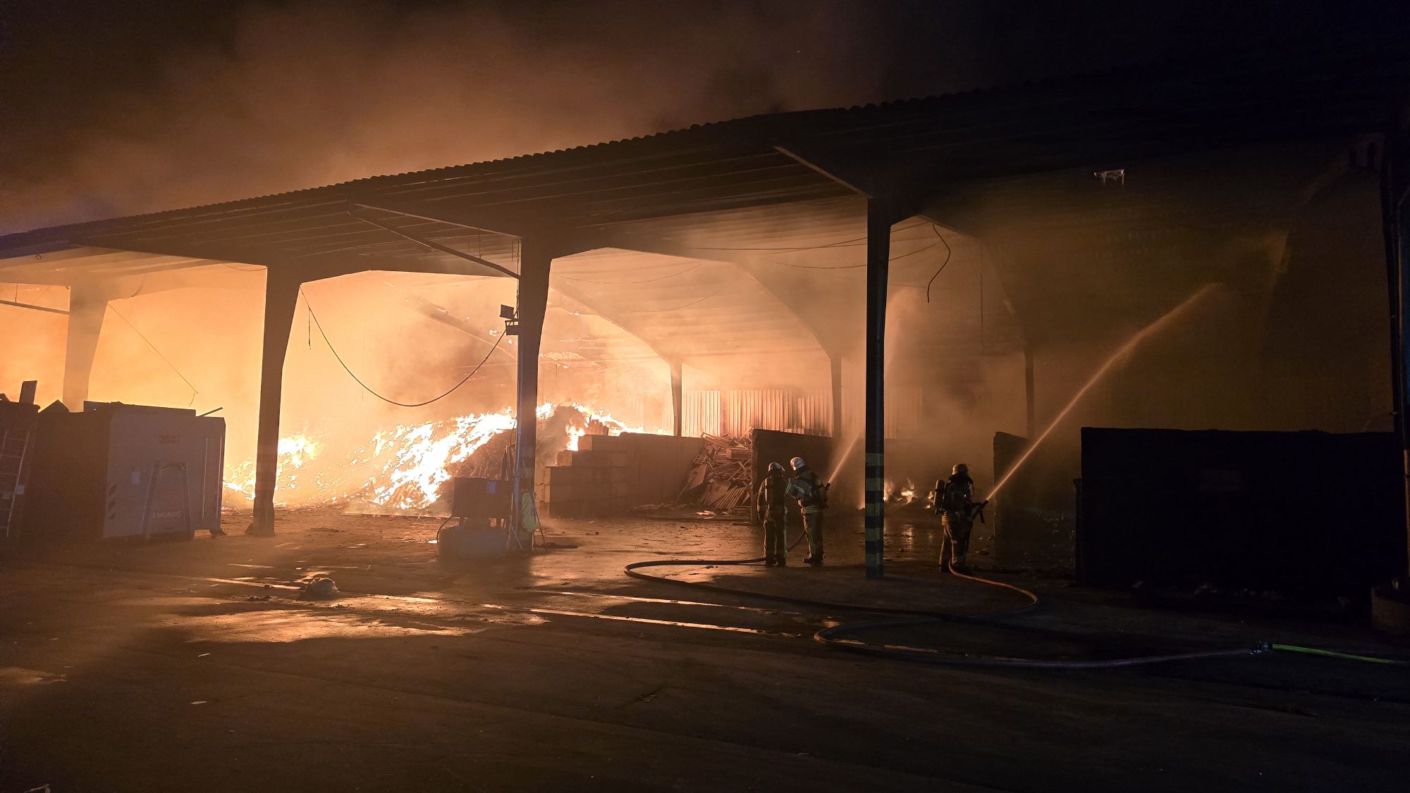 Schon auf Anfahrt zur Einsatzstelle war ein deutlicher Feuerschein sowie eine starke Rauchentwicklung sichtbar, weshalb das Einsatzstichwort frühzeitig von Feu 3 auf Feu 4 – „Großbrand“ erhöht wurde. Das Feuer war im gegenüberliegenden Teil einer Wertstoff-Sortierhalle ausgebrochen – in jener Anlage, in der es bereits Anfang Mai zu einem größeren Brand gekommen war. In der Halle werden hauptsächlich Verpackungsabfälle aus den gelben Wertstofftonnen gelagert.