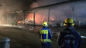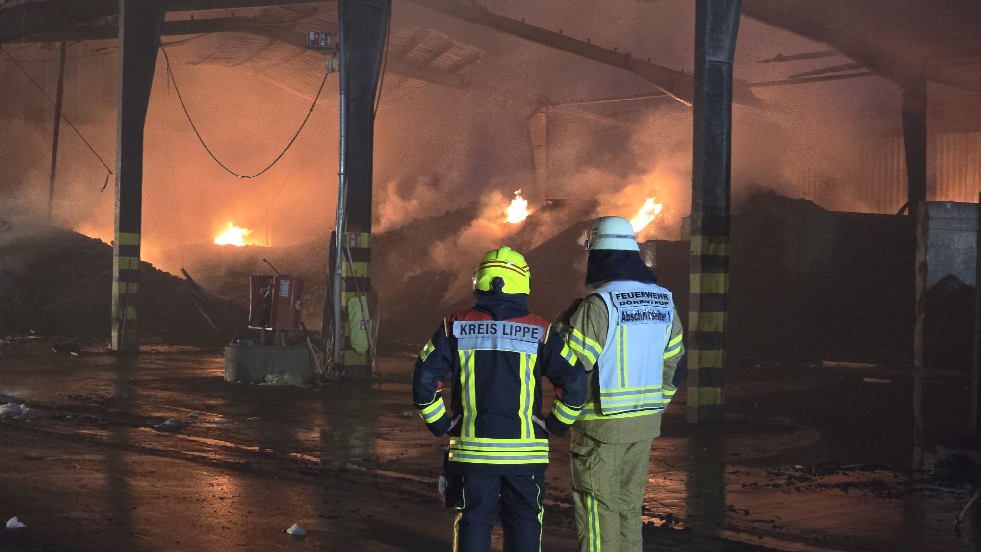 Mit einem intensiven Löschangriff konnte der Brand unter Kontrolle gebracht werden. Zur Sicherstellung der Wasserversorgung wurde das Wasserfördersystem Lemgo sowie mehrere Einheiten benachbarter Feuerwehren nachalarmiert. Im weiteren Verlauf kamen zusätzlich Atemschutzgeräteträger aus umliegenden Kommunen, die Messekomponente des Kreises Lippe, das Umweltamt, das Landesamt für Natur, Umwelt und Klima (LANUK NRW) sowie die Bezirksregierung Detmold zum Einsatz.