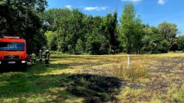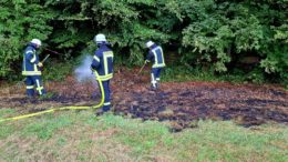 Die Feuerwehr Dörentrup wurde zu einem Flächenbrand im Ortsteil Spork alarmiert. Aus bislang ungeklärten Gründen gerieten ca. 20m² Feld am Rande eines Waldgebietes in Brand.Mittels eines C-Rohres konnte das Feuer schnell gelöscht werden.Aufgrund der anhaltenden Trockenheit wurde die Brandstelle und das nahe Umfeld zur Sicherheit durch die Feuerwehr noch großzügig bewässert, um einen erneuten Brandausbruch zu vermeiden.