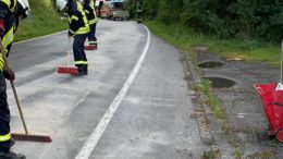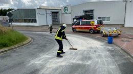 Die Feuerwehr Dörentrup wurde erneut in das Industriegebiet im Ortsteil Humfeld alarmiert. Wieder galt es eine Ölspur auf der Straße „Tramsmeiers Berg“ zu beseitigen. Die Verunreinigung wurde mit Bindemittel abgestreut und anschließend zur fachgerechten Entsorgung wieder aufgenommen. In Absprache mit der Polizei wurde eine Beschilderung vorgenommen.